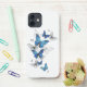 Flying Blue Butterflies morpho and white butterflies on a light abstract background. Morpho. Design with blue butterflies morpho.