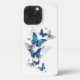 Flying Blue Butterflies morpho and white butterflies on a light abstract background. Morpho. Design with blue butterflies morpho.