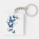 Flying Blue Butterflies morpho and white butterflies on a light abstract background. Morpho. Design with blue butterflies morpho.