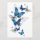 Flying Blue Butterflies morpho and white butterflies on a light abstract background. Morpho. Design with blue butterflies morpho.