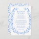 Immerse yourself in classic sophistication with this details card designed for romantic bohemian blue floral weddings. Featuring a delicate wreath of blue folk elements, this card offers customization options to personalize your experience. Add the names of the bride and groom on the back for a distinctive touch, elevating the overall contemporary elegance of your wedding celebration.