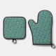 Blue Folk Art Trout/Salmon Oven Mitt & Pot Holder Set