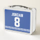 Blue Football Jersey with Custom Name and Number Metal Lunch Box