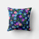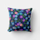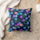 Original fine art design of colourful blue and pink Forget Me Not garden flowers against an elegant midnight blue background by artist Carolyn McFann of Two Purring Cats Studio printed on a quality and customizable American Mojo brand throw pillow for all who love Forget Me nots.