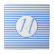 Stylish And Funky Monogram M Letter Light Blue / Lavender White Circle Frames And Stripes / Lines Minimalistic Ceramic Tile to add to your home / office / business decor collection. A cool gift / present idea for all who love custom design items, positive vibes, organic theme, minimalism etc. Holidays, happy, baby shower, boy, girl, birthday etc. Change the background colour to suit your own needs, taste and style. Add your name / surname / company / brand name letter to personalize.