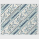 Blue French Vintage Floral Stripe Wrapping Paper