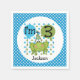 Blue Frog 3rd Birthday paper napkins are fun, colourful, great for kids who love frogs! Features a cute green frog wearing a polka dotted party hat, green and blue polka dots, balloons of blue and green that read I'm 3, and a background of blue polka dots. You can easily add the third birthday child's name to personalize these frog theme paper napkins. Look for the matching frog 3rd birthday paper plates, favour bags, T-shirts, buttons, bags, and more!