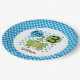 Blue Frog 3rd Birthday paper plates are fun, colourful, great for kids who love frogs! Features a cute green frog wearing a polka dotted party hat, green and blue dots, balloons of blue and green that read I'm 3, and a wide border of blue on blue polka dots. You can easily add the third birthday child's name to personalize these frog theme paper plates. Look for the matching napkins, T-shirts, buttons, bags, and more!