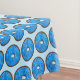 Tablecloth features an original marker illustration of a chocolate doughnut with blue frosting and rainbow sprinkles.