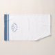 Game Set Match, blue crest, stripe tennis hand towel. Personalize with the year, tennis club / championship / tournament name and location. The perfect addition to your tennis kit or as a gift for a tennis lover. Designed to match our Game Set Match Tennis Collection.