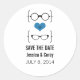 Quirky and chic Geeky Glasses Save the Date Stickers featuring a royal blue heart flanked by two pairs of geeky eyeglasses, a manly pair and a girly pair representing the groom and bride. These offbeat but sophisticated save the date stickers are perfect for announcing your nerdy wedding! Easy to customize, simply add the details of your wedding in the spaces provided. Click on the "Customize It" button to find additional personalization options.