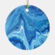 A variety of blues and white play and swim together to create a vibrant composition. Fluid art is remarkably three-dimensional; all of the colours layer and intermingle to create a one-of-a-kind piece of modern art.