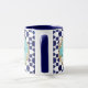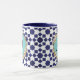 Blue Geometric Pattern Mug with Gold Floral Circle