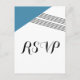 Modern and trendy Geometric Stripe Wedding RSVP Postcard with a blue triangle and thinly striped accent. This simple yet elegant response postcard is set up to be easily customized with your wedding information. Find more customization options by clicking Customize It.