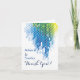 Blue and green geometric triangles modern wedding Thank You photo note card with your photo on the inside featuring abstract geometric triangles in tones of blue, light blue, and yellow. This contemporary wedding design is a totally customizable template design part of a wedding collection or set and is perfect for a summer wedding.