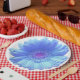 Blue gerbera daisy paper plate
