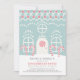 This cute holiday gingerbread decorating party invitation features a light teal/turquoise blue gingerbread house with snow and candy canes. The reverse side features a light teal background with candy cane patterns. Change the background colour and personalize it for your needs. You can find matching products at my store.