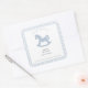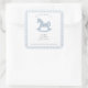 Blue and white gingham check personalized "for the library of" bookplate sticker with cute rocking horse silhouette.