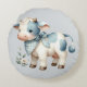 Blue Gingham Baby Cow Pastel Farm Aesthetic Round Pillow