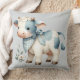 Blue Gingham Baby Cow Pastel Farm Aesthetic Throw Pillow