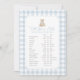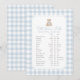 Add a finishing touch to your baby shower decor or activities with this elegant blue gingham teddy bear game card.