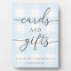 This books and gifts sign features a classic gingham design and modern fonts. The script heading is an image that cannot be edited. The heading image can be resized to fit any poster size. All of the other text is fully editable. For more advanced customization of this design, simply select the "Customize It" button above.