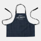Custom kitchen apron feature classic dark blue and black gingham check with light gray personalized text of future grill master and name . Great personalized bbq apron for little men. These father son matching grill aprons make a great gift for Father's Day, Grandparent's Day, birthdays and other special occasions.