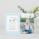 Blue Gingham Golf Boy 1st Birthday Photo Invitation