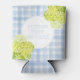 Keep it cute and classy with these blue gingham watercolor hydrangea can coolers for any event serving canned refreshements