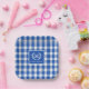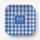 Custom Monogram Paper Plates Blue Gingham Pattern Design - 6 colours.