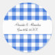 Blue gingham pattern wedding favours classic round sticker