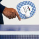 Super cute ping pong paddle with blue gingham plaid and the grill loving couple's two letter monogram as well as first and last name above their wedding date makes this custom paddle a fun housewarming or anniversary gift or get a pair for guests to play at backyard engagement parties, couple's showers or even a casual wedding reception.