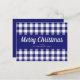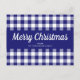 Blue Gingham Plaid Script Merry Christmas Postcard