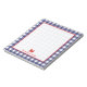 A notepad featuring a blue gingham background. Illustration of a red crab at bottom. Personalize with your name under crab.