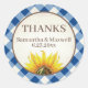 Blue Gingham Sunflower Thank You Classic Round Sticker
