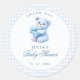Blue Gingham Teddy Bear Neutral Baby Shower Classic Round Sticker