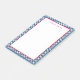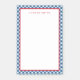 This stylish blue gingham Post-it® Notes pad features a blue gingham pattern with a red border and a white centre.