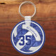 This custom team colours volleyball keychain for girls features a blue and white volleyball graphic that has a girly floral kaleidoscopic pattern blended with the blue volleyball panels and an abstract swirl pattern blended with the white panels - her name and jersey number are customizable in coordinating blue - by katz_d_zynes | see more custom volleyball team colours keychains in katzdzynes' Volleyball keychains collection >>> https://www.zazzle.com/collections/119042498553482541