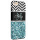 GIRLY LIGHT BLUE GLITTER (PRINTED EFFECT) WITH BLACK AND WHITE CHEVRON PATTERN, MONOGRAMMED WITH YOUR NAME, YOUR INITIAL OR MONOGRAM ON A BLACK STRIPE OR BAND WITH A BORDER OF PRINTED WHITE DIAMONDS. TRENDY, CHIC COOL CUTE DESIGN FOR HER, THE TRENDSETTER, THE FASHIONISTA