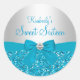Sweet Sixteen sticker. Blue glitter & Bow. Exclusive Zazzle. Customize with your own details. PLEASE NOTE all flat images! They Do NOT have real Bows, Glitter or Jewels!!
