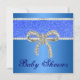 Blue Glitter Diamond Bow Baby Shower Invitation