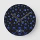 Blue glitter dog paw pattern, Monogram Round Clock