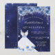 A modern, stylish and glamourous invitation for a Quinceañera, 15th birthday party. A midnight blue background with faux glitter dust, a dress and blue florals. The blue colour is uneven. The name is written with a modern hand lettered style script. Personalize and add your party details.