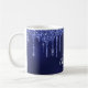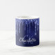 A girly and trendy monogrammed mug. A chic navy blue background decorated with faux glitter drips, paint dripping look. The blue colour is uneven. Personalize and add a name and monogram initials. Blue and white coloured letters. The name is written with a modern hand lettered style script.
