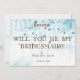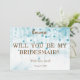 Blue Glitter Minimal Script Bridesmaid Proposal Invitation