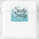 Celebrate turning 60 in style with this modern 60th birthday design on a turquoise blue glitter ombre background, these chic 60th birthday square stickers are perfect for creating a fabulous 60th birthday celebration. The words sixty and sassy are set using modern script. If you need any help or matching products, please contact us through our store. We're happy to help you make your 60th birthday party a fabulous event!