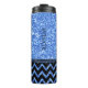 Blue Glitter Pattern & Black Chevron Pattern Thermal Tumbler