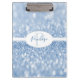 Personalize a unique office gift with a Blue Glitter Personalized Clipboard. Clipboard design features a blue glitter background and oval banner where you can add your name and monogram for personalization. Additional gift items available with this design as well. Please contact me directly if you need assistance with personalizing this item. Glitter is artistically rendered and final product will not contain actual glitter.