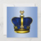 A sparkling blue baby shower announcement telling the world a little prince is on his way. The front of the announcement is a blue metallic image with shiny blue glitter over the top half. The other side of the card is all blue, with a magnificent gold and blue velvet crown - fit for any new prince! All details can be easily changed as necessary.