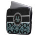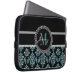 Blue Glitter Printed, Black Damask Personalized Laptop Sleeve